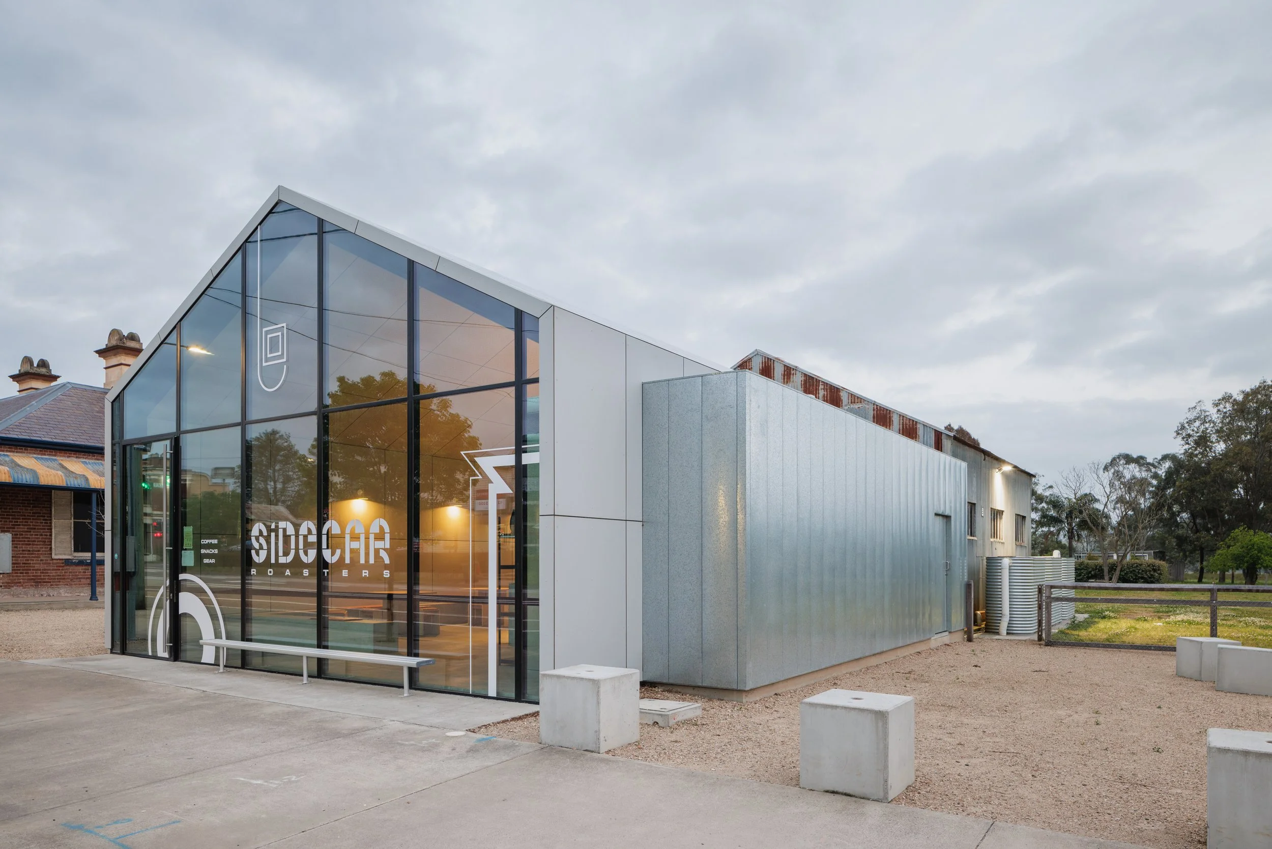 “A design that is integrated with the surrounding rural landscape, this project aims to at once honour and revitalise the towns sense of community and wonder. The existing shed has been repurposed to accomodate a contemporary take on the cinema experience - a once loved past-time of the town.